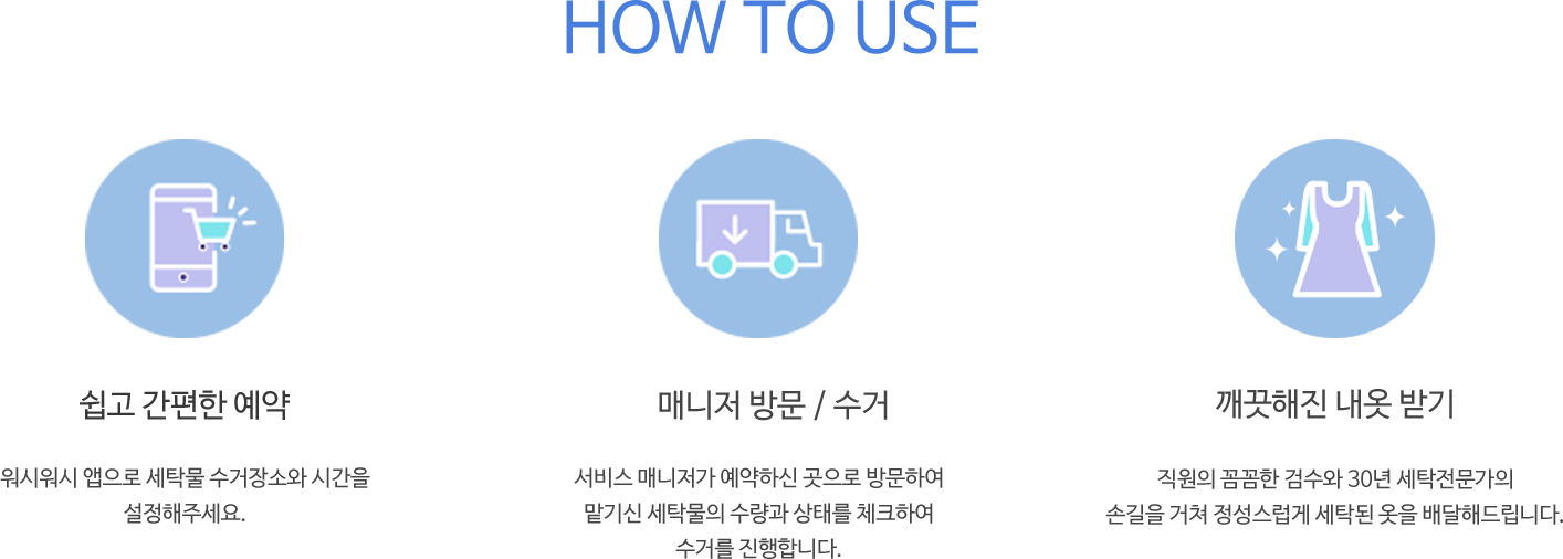 깨끗하게 세탁하여 약속한 시간에 다시 전달해드립니다.